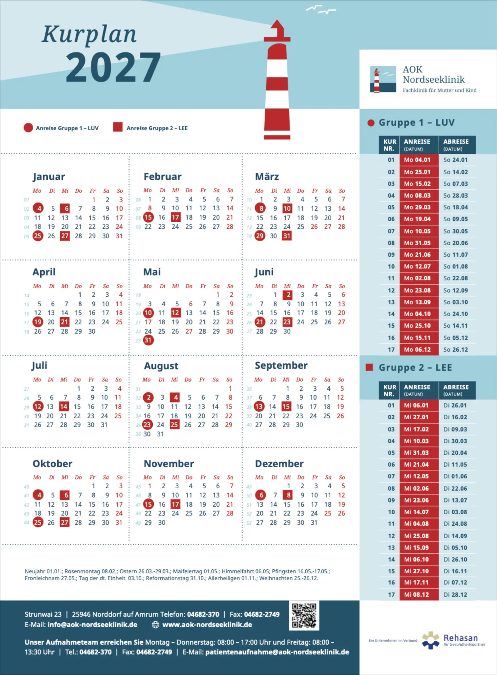 Der Kurplan der AOK-Nord­see­klinik in der Über­sicht